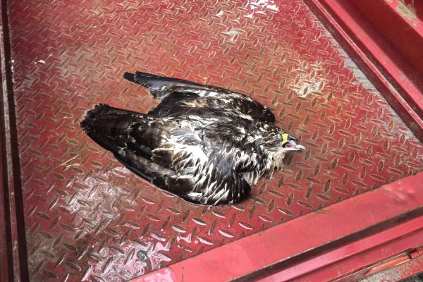 接报后,民辅警迅速赶到现场,看到一只以黑白为主色调的鸟类,全身羽毛湿透,正蜷缩在三轮车车兜角落。据郑某敏讲述,她下午驾驶三轮车前往刘寨村卫生室途中,经过郑小楼村民组时发现这只鸟落在电线杆附近,多次尝试仍无法正常飞行,疑似受伤,便先将其捡起来放进车里。随后,经过其儿子辨认,得知这是国家保护动物——老鹰。于是,郑某敏立即拨打了报警电话求助。