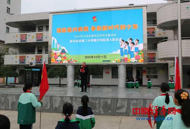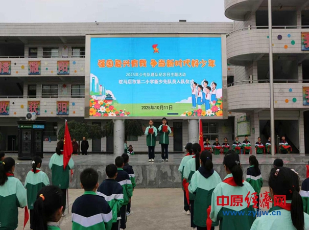 中原经济网驻马店讯 (记者 杨晓 全媒体记者 晨曦 通讯员 武优) 金秋送爽、丹桂飘香,我们迎来了中国少年先锋队建队76周年的光辉时刻。为纪念这一具有历史意义的日子,2025年10月11日,驻马店市第二小学举行了“强国复兴有我争当新时代好少年”新队员入队仪式。