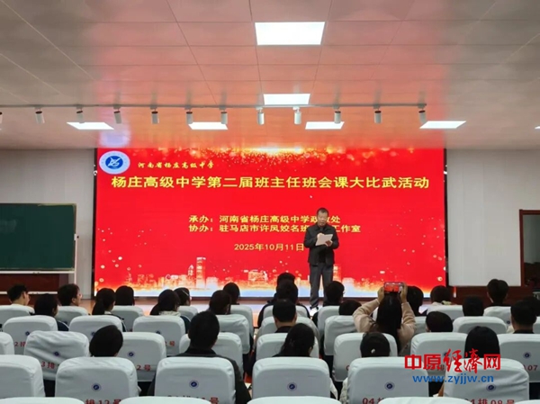 中原经济网驻马店讯(记者 杨晓 全媒体记者 冯占华通讯员 李新洁)10月11日,西平县杨庄高中举行了一场别开生面的班主任班会大赛,校党委书记武纲举,党委委员、纪委书记朱杰,党委委员、副校长董向娜,党委委员、副校长赵大磊,党委委员李拥军,校领导武锴、李运宝来到现场,十余位班主任各展所长,呈现了一场教育智慧的盛宴。