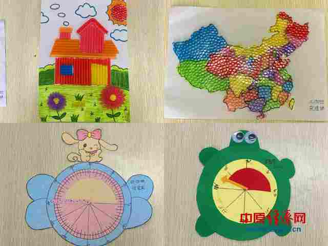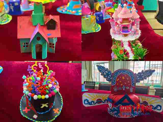 各年级实践作业亮点纷呈,实现“年级特色鲜明、全员创意迸发”。一年级数字创意贴画,以豆子、树叶等材料将数字变身为生动场景,童稚创作中尽显数字趣味;二年级纸杯钟表,把平凡纸杯打造成创意时间载体,在制作中深化时间认知;三年级吸管拼贴画,用彩色吸管拼出各类几何图形,于创作中感受数学对称之美;四年级创意量角器,融入卡通形象与角度知识,让角度度量学习充满乐趣;五年级卡纸建筑,通过卡纸塑造立体建筑模型,培养空间思维能力;六年级数学帽子,以废旧纸皮为材料装饰数学元素,在设计中展现数学与艺术的融合。