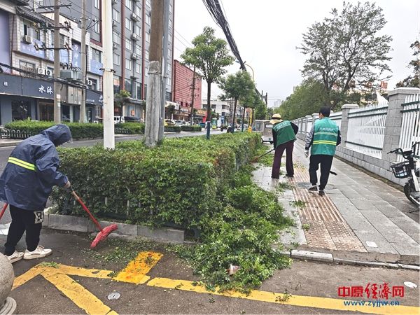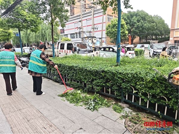 中原经济网驻马店讯 (记者 杨晓 全媒体记者 刘勇伟 通讯员 徐瑗婧)近日,驻马店市遭遇连续阴雨天气,部分道路两侧绿化植物因雨水充沛而出现生长过盛的情况,阻碍市民出行视线。为确保消除视线盲区,连日来,驻马店开发区城管理事务中心组织人员持续开展绿化带修剪整形工作。