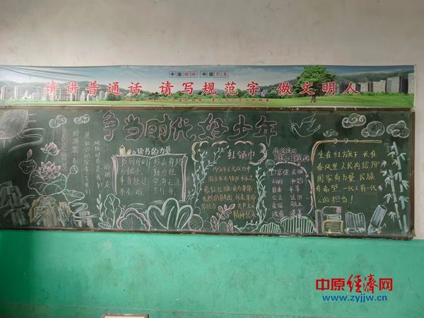发挥班级文化建设中黑板报的独特魅力,围绕主题精心设计,将爱国情怀与少年志向融入方寸之间,文字内容与新时代紧密相连。传递出“少年智则国智,少年强则国强,少年富则国富”的深刻寓意。