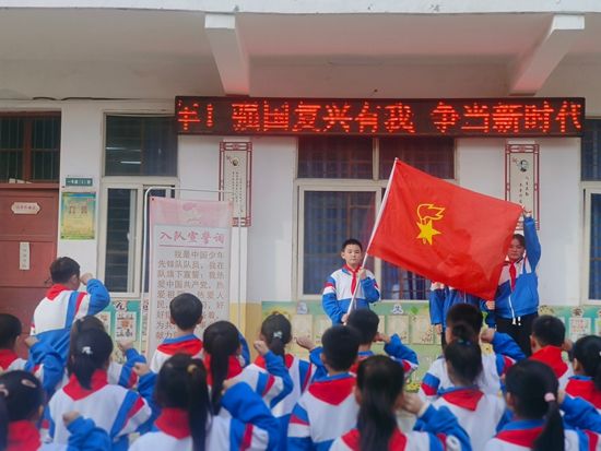 中原经济网驻马店讯(记者 杨晓 全媒体记者 冯占华 通讯员 李娜)为继承和发扬中国少年先锋队的光荣传统,培养学生健康向上、积极进取的精神,促进红领巾事业的蓬勃发展,在中国少年先锋队第76个建队日到来之际,西平县柏亭朱洪小学举行少先队建队日新队员入队仪式活动。