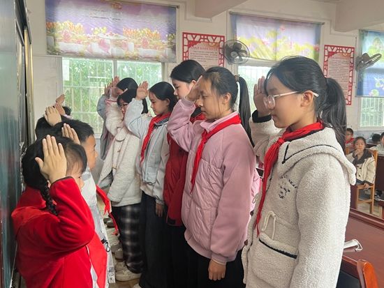 在活动的高潮部分,新一批少先队员举行了入队仪式。老队员们为新队员郑重地佩戴上红领巾,新队员们在队旗下庄严宣誓:“我热爱中国共产党,热爱祖国,热爱人民,好好学习,好好锻炼,准备着:为共产主义事业贡献力量!”那紧握的拳头、坚定的誓言,展现出他们加入少先队的自豪与决心。