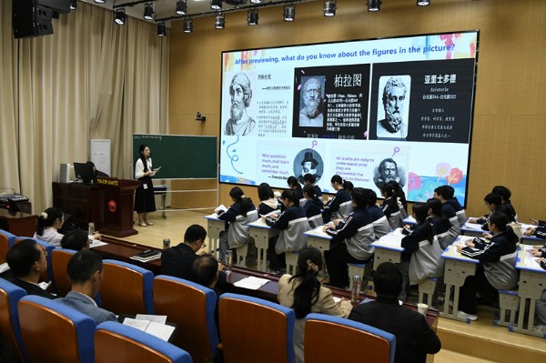 课堂展示环节,潢川县高级中学老师姬香芸带来了一节以核心素养为导向的英语示范课。课程紧扣语言能力、文化意识、思维品质三大核心维度,通过情境互动、小组探究等多元形式激活课堂,同时精准把握学生差异,实施分层引导策略,为在场教师提供了可借鉴、可落地的高效课堂范例。