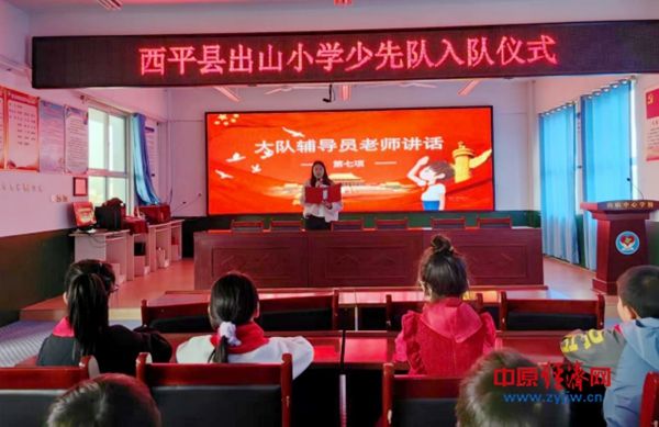 中原经济网驻马店讯(记者 杨晓 全媒体记者 冯占华 通讯员 陈思佳)10月13日,在第75个中国少年先锋队建队日当天,西平县出山小学校园内队旗飘扬、队歌嘹亮,一场以“强国复兴有我 争当新时代好少年”为主题的少先队入队仪式隆重举行,新队员在这个特殊的日子里,正式加入中国少年先锋队,开启成长新征程。