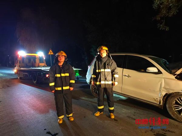 中原经济网驻马店讯(记者 杨晓 全媒体记者 冯占华 通讯员 朱智敏 李丹丹)2025年10月14日晚9时许,西平县专探乡加油站附近突发三车相撞事故,事故地点在专探乡水泉汪村,距中大石化加油站50米处,两名驾乘人员被困在变形车厢内,生命安全受到严重威胁。面对险情,专探乡消防救援队伍、中大石化加油站工作人员迅速响应,以专业处置、暖心服务与高效联动,上演了一场“与时间赛跑”的生命救援,充分展现了专探乡应急救援体系的成熟完善与基层人员的责任担当。