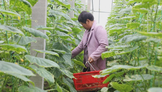 郸城县汲水镇王古同行政村村民高素芝说:“在这摘黄瓜,工作也不累,一天能挣60块钱,离家也近,非常方便。”