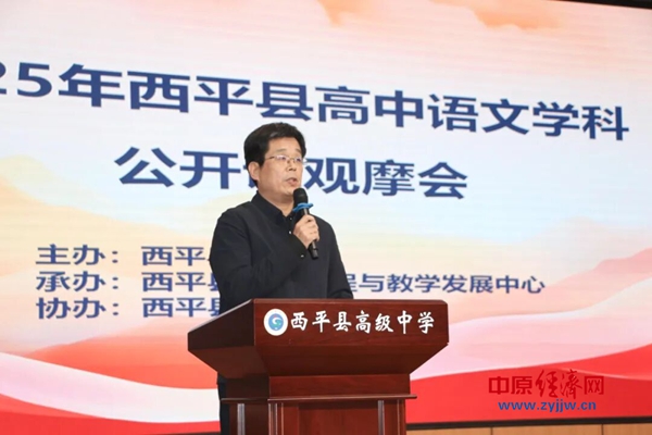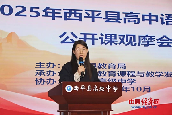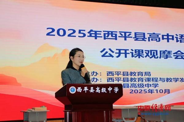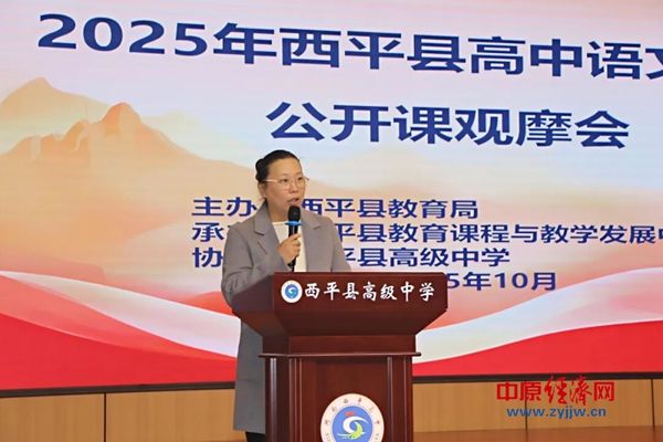 中原经济网驻马店讯(记者 杨晓 全媒体记者 冯占华 通讯员 肖丽娟 赵会敏 肖旭东)十月的风,吹来了桂香,也吹来了思想的涟漪。10月16日上午,全县高中语文学科公开课观摩会在西平高中图书馆四楼报告厅举行。本次活动由西平县教育局主办、县教育课程与教学发展中心承办、西平高中协办。县教育局党组成员、副局长安娟,县教育课程与教学发展中心主任莫华、副主任范云灏等领导出席活动。西平县教育顾问、西平高中名誉校长石敬凯,西平高中党委委员、副校长陈苗,副校长田冀峰,副校长李阳陪同出席,各高中全体语文教师参加观摩。