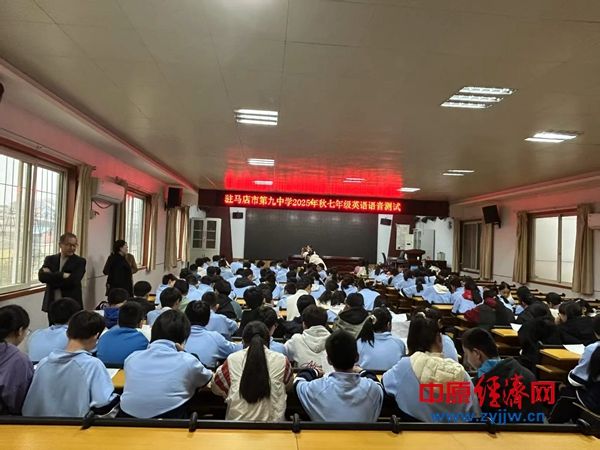 中原经济网驻马店讯(记者 杨晓 全媒体记者 晨曦 通讯员 张莹 张丽丽)为筑牢七年级学生英语学习的语音基石,提升学生英语听说能力与核心素养,2025年10月16日下午第三节,驻马店市第九中学在大会议室隆重开展七年级英语语音测评活动,为校园英语教学添上了浓墨重彩的一笔。