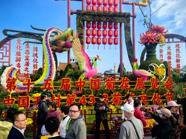 布展设计深度融合开封深厚的文化底蕴,在突出以人民为中心的发展思想的同时,紧扣文旅融合与“国际文化旅游名城”建设目标。一个个精心设计的菊花造型点缀在古城的大街小巷间:“祝福花篮”营造“喜迎国庆、菊香送福”的喜庆氛围;“菊韵宋风”展现“宋韵开封”的文化内涵,让游客在赏菊之余,感受八朝古都的历史文脉。