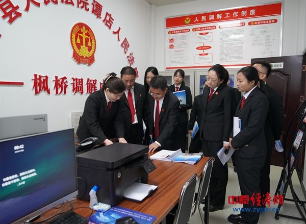 尽管天降大雨,却丝毫未减杨宏伟一行的学习热情。首站来到谭店法庭,他们认真聆听庭长李军详细介绍西平县人民法院近一年来家事法庭的审理情况。随后,一行人参观了审判庭和调解室,围绕家事审判中涉及未成年人和老年人案件的审理经验展开深入交流。通过一个个典型案例和一组组翔实的数据,双方不仅对家事审判工作有了更为深刻、全面地认识,更在交流中碰撞出思维的火花,毫无保留地分享着各自的经验与见解。