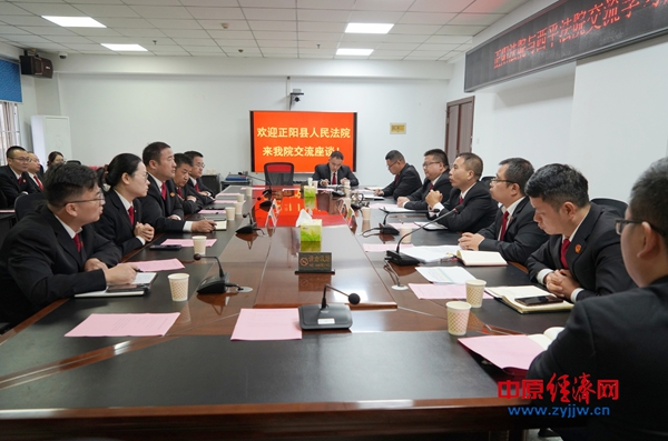 中原经济网驻马店讯(记者 杨晓 全媒体记者 冯占华 通讯员 杨斐 朱可萱)为进一步实现经验共享、优势互补,携手推动审判执行工作迈向高质量发展新征程,10月17日,正阳县人民法院党组成员、副院长杨宏伟,专委朱安宏一行前往西平县人民法院开展交流学习活动。西平县人民法院党组成员、副院长张新伟,党组成员、副院长刘光明全程陪同,共同开启了一场互学互鉴、同频共振的司法交流之旅。