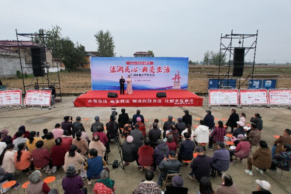 该活动特邀《梨园春》栏目组,以群众喜闻乐见的文艺形式把法律知识送到村民家门口。