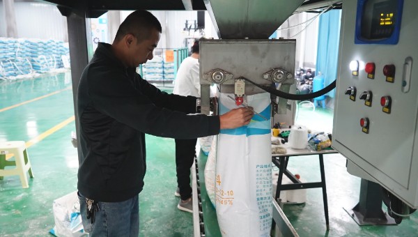 河南水浮肥业有限责任公司副总经理王展介绍说:“这是我们为南阳的客户定制生产的一批小麦专用控释肥,他们在我们这儿下了50吨的订单。”