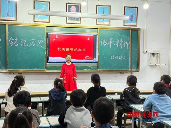 中原经济网驻马店讯(记者 杨晓 全媒体记者 冯占华 通讯员 丁中堂)在历史的长河中,总有一些时刻如璀璨星辰般闪耀,照亮我们前行的道路。10月22日,西平县重渠李庄小学的各个班级在抗美援朝纪念日即将到来之际开展了一场意义深远的抗美援朝纪念日主题班会课。