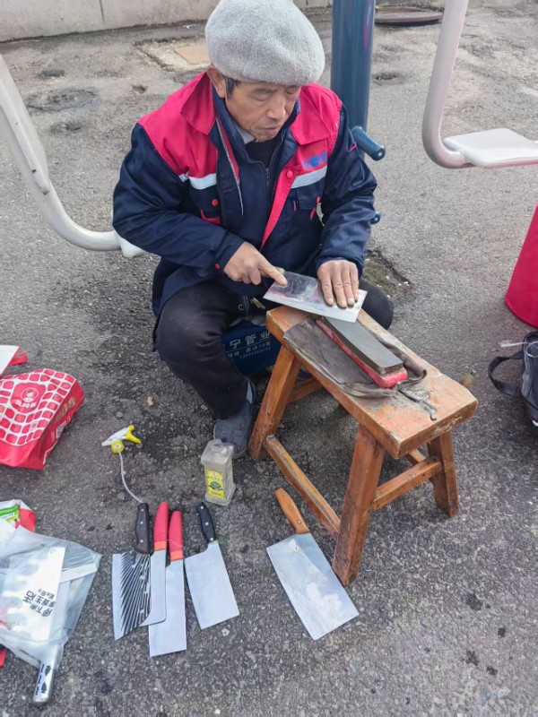 现场暖意融融,多项便民服务同步开展,精准对接居民生活需求。周口东鹏瓷砖的服务展位前排起长队,居民们纷纷带来家中的钝刀与剪刀,志愿者娴熟地打磨修整,让老旧工具重焕锋利,切实解决了生活中的小难题。