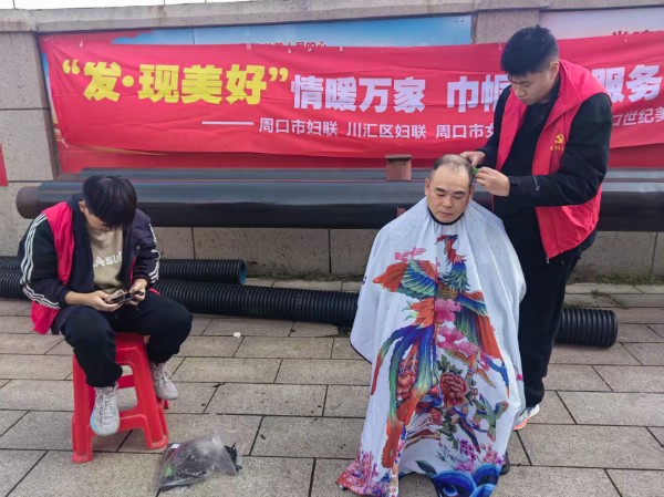 不远处的义剪区域同样人气高涨,周口世纪美容美发学校的志愿者们耐心询问居民喜好,精心设计修剪发型,伴随着剪刀的“咔嚓”声,居民们的精神面貌焕然一新,尤其是行动不便的老年居民,在家门口就享受到了便捷服务。