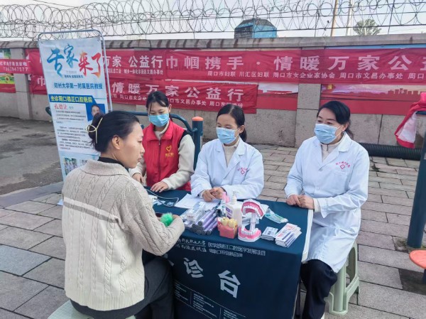 另一边,周口德正口腔医院的医护团队设立专属服务台,为居民提供免费口腔检查,细致查看牙齿健康状况,针对龋齿、牙周护理等常见问题答疑解惑,并普及日常护牙知识与健康建议,用专业守护居民口腔健康。