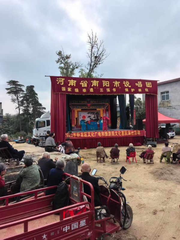 十月以来,卧龙区英庄镇联合南阳市说唱团深入开展“送戏下乡”文化惠民活动,将一场场精彩纷呈的戏曲演出送到村民家门口,以文化力量浸润基层,助力乡村文化振兴。