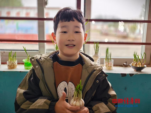 在教室的窗台上,摆放着一个个透明的塑料瓶和别致的小容器,里面种植着生机盎然的大蒜。这些小小的“绿色生命”成为四年级同学们关注的焦点。从最初将蒜瓣放入水中,到幼芽一点点破土而出,再到嫩绿的蒜苗茁壮成长,每一个阶段都吸引着同学们好奇的目光。