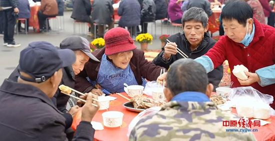 最后,活动进入长寿宴环节。全村70岁以上老人欢聚一堂,共享这场充满温情的盛宴。“平时家里就我一个人,几个儿子都在外面忙,顾不上,我从来不怪,村里现在建设得好了,重阳还有演出看,还有长寿宴,我没什么文化,心里想,嘴上不会讲,只有感谢党,感谢政府。”现场的大爷如是说道。