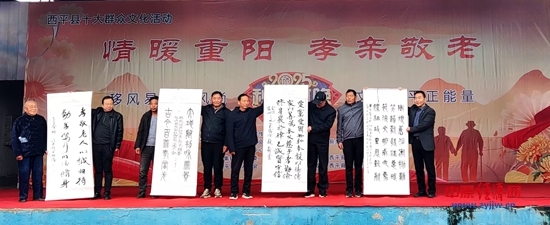 活动在欢快的开场鼓舞中拉开帷幕。整场演出内容丰富、形式多样。既有弘扬孝道文化的歌舞表演,也有倡导文明新风的原创节目。其中,《中华孝道》手势舞和情景剧《常回家看看》用质朴的表演和真挚的情感,深深打动了观众,现场掌声阵阵。最后,“写家训·送中堂”活动将现场氛围推向高潮,西平县书法家协会的老师们,现场书写家训,并赠予村里的模范家庭,为演出画上了圆满的句号。
