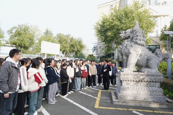 活动伊始,同学们在法院工作人员的引导下,亲身体验了法院的安检流程。步入审判大楼前,一座威严的“獬豸”雕塑吸引了大家的目光。法院工作人员向同学们介绍“獬豸”等法院元素的象征意义,使抽象的法律精神化作了具体可感的形象,深深烙印在同学们心中。