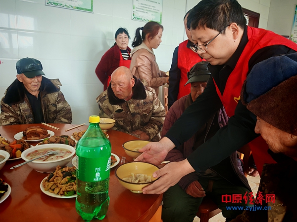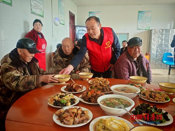 爱心餐食递关怀,其乐融融度佳节。除了义诊服务,镇里还为老人们准备了丰盛的爱心餐食。镇党委书记张晓东同志和镇长梅德龙同志热情地为老人们端上热气腾腾的饺子和各类菜肴。餐桌上,荤素搭配的菜品琳琅满目,老人们围坐在一起,吃着可口的饭菜,拉着家常,现场其乐融融,满是温馨的节日氛围。