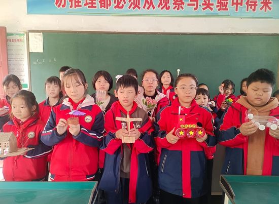 同学们充分发挥想象力与动手能力:有的小组合作探究浮力与动力原理,精心设计“动力小船”;有的小组收集落叶,通过观察、提取色素、拼贴,打造“秋叶的变装魔法”;还有的小组利用塑料瓶、橡皮筋等日常材料,探索“藏在身边的发声秘密”,制作简易发声乐器。陈老庄小学始终注重将科学教育融入日常,此前已开展过“校园植物观察日记”“废旧材料改造小发明”“趣味科学实验展演”等一系列实践活动,为孩子们搭建起了探索科学的平台。