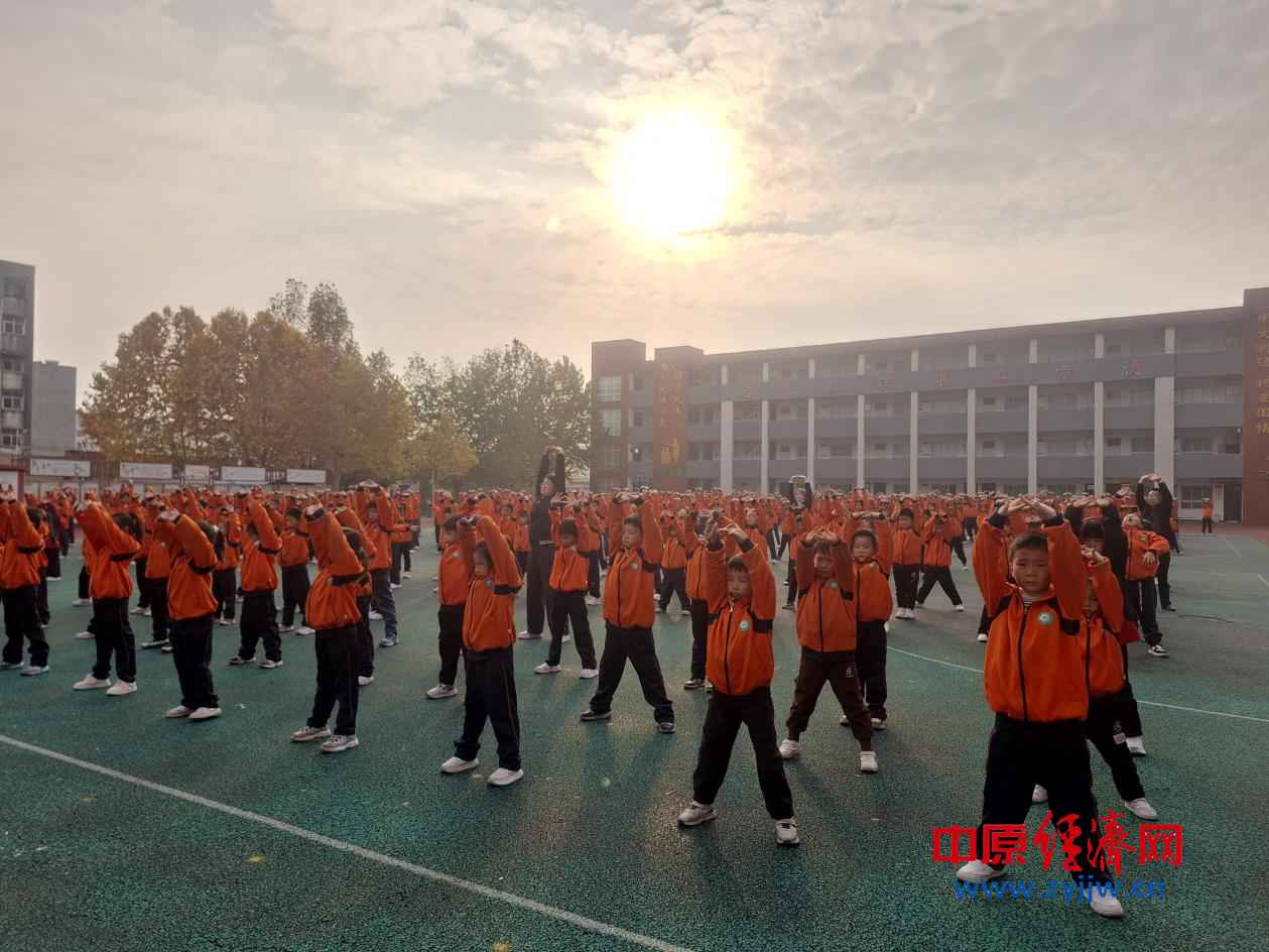 中原经济网驻马店讯 记者 杨晓 全媒体记者 晨曦 通讯员 张家琳) 为落实“阳光体育”教育理念,丰富校园文化生活,增强学生体质,10月30日,驻马店市第四小学在校园操场开展阳光体育大课间八段锦全校展示活动,全体师生共同参与。