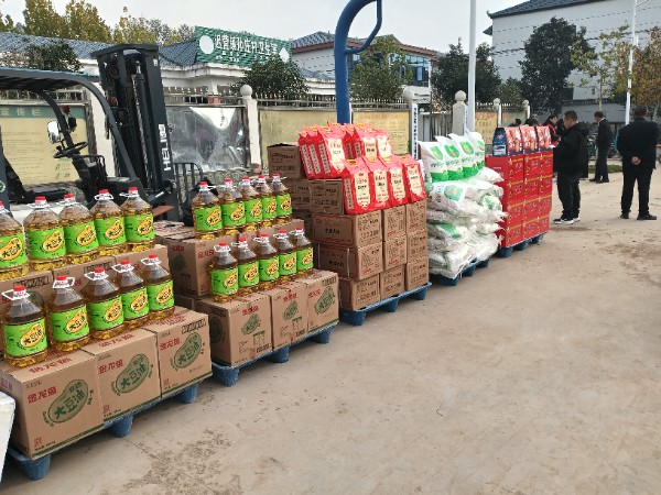本次活动为全村70岁以上老人佩戴红花和上着金色大字“永远跟党走,幸福更长久”绶带,耀眼瞩目,令人羡慕不已。活动对“现代化好儿子李文博”、优秀“环保卫士张二月”等进行了表彰,颁发了匾牌。活动现场为全村178位70岁以上老人,发放了米面油等节日礼品。特别值得提起的是,活动还特别看望慰问了村老干部90多岁的田秀荣夫妻。