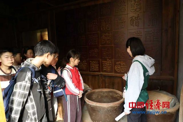 在工业展示区,透明参观通道让同学们直观看到蒸煮、制曲、发酵等传统酿醋工艺流程,古老的酿醋器具与现代化生产设备形成鲜明对比,让大家感受到非遗技艺的传承与创新。
