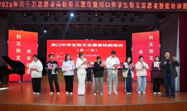 10月30日下午,河南省2025年百千万志愿者高校艾防宣传暨周口市学生防艾志愿者技能培训活动启动仪式在周口文理职业学院举办。该校350余名防艾志愿者参加了活动。