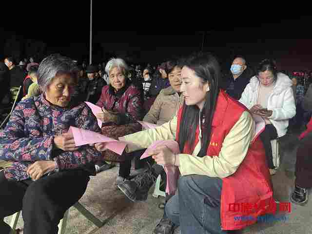 在演出正式开始前,精心组织的“映前十分钟”宣讲环节拉开了活动序幕。志愿者们身着红马甲,手持宣传资料,走进等候观看演出的群众中间,开展“推动移风易俗 倡导文明新风”主题宣传。“大娘,您看现在提倡喜事简办,既不失面子又节省开支,多好啊!”志愿者们用亲切的口音,结合身边实例,向群众讲解移风易俗的重要意义,倡导婚事新办、丧事简办、文明祭祀等新风尚。“这话在理!”村民们或坐或站,认真聆听志愿者的讲解,不时发出赞同的声音。