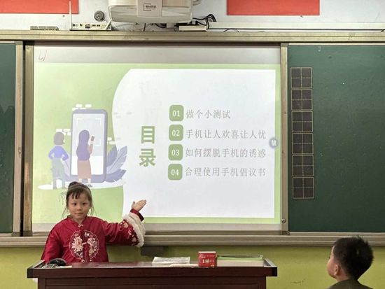 各班班主任精心准备,形式多样,从中小学生沉迷手机的危害与弊端说起,让同学们了解过于频繁、不合理地使用手机,不仅会浪费学习时间,以致荒废学业,还有损身心健康,导致视力衰减、注意力涣散和睡眠失调等健康问题,不利于自己健康成长。