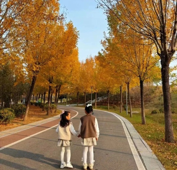 步入引黄调蓄湖景区,仿佛闯入金色童话世界。道路两侧的法桐、白蜡、银杏等树木褪去翠绿,换上橙黄、金黄的盛装,微风拂过,落叶如蝶翼般轻盈飘落,铺就出一条柔软的“黄金大道”。湖面波光粼粼,倒映着岸边斑斓的树影与湛蓝的天空,偶尔有水鸟掠过水面,激起圈圈涟漪,为静谧的秋景增添了灵动气息。阳光透过枝叶的缝隙洒落,在地面形成斑驳的光影,随手一拍便是氛围感十足的秋日大片。