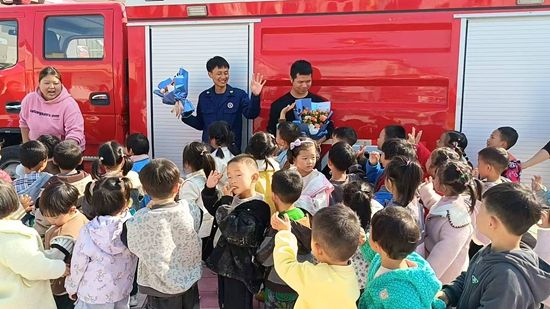 活动尾声,幼儿园师生向消防宣传员献上鲜花与感谢卡,孩子们挥舞着小手与“蓝朋友”道别,清脆的“谢谢消防员叔叔”响彻校园。