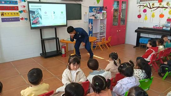 活动伊始,消防宣传员结合幼儿年龄特点,以生动易懂的语言,通过课件向孩子们讲解了火灾类型、逃生方法、用电用气安全等基础消防知识,彩色的课件与趣味的表述,让安全常识在孩子们心中扎根,有效增强了他们的自我保护意识和应急处理能力。