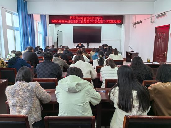 中原经济网驻马店讯(记者 杨晓 全媒体记者 冯占华 通讯员 赵俊杰)11月4日,西平县应急管理局召开专题会议,组织全体人员集中学习《2025年西平县在职职工住院医疗互助保障工作实施方案(试行)》,解读政策核心内容,部署全局职工参保组织工作,切实将医疗互助保障政策落到实处,为干部职工健康保驾护航。