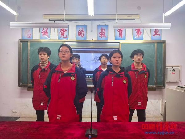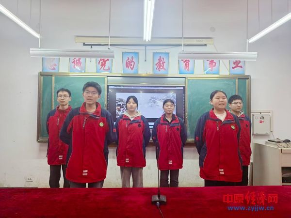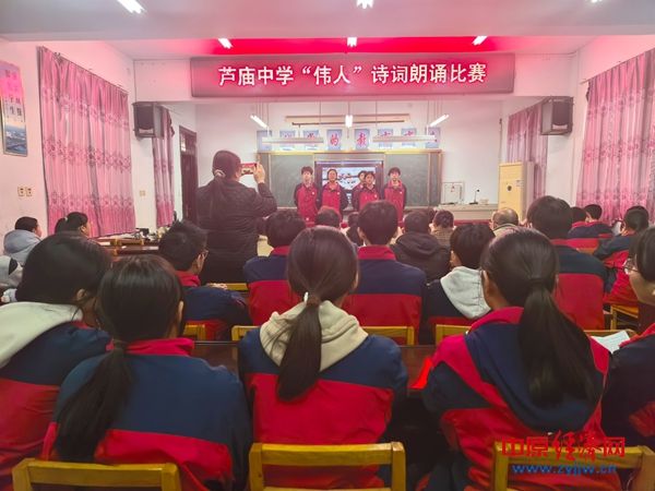 中原经济网驻马店讯(记者 杨晓 全媒体记者 冯占华 通讯员 陈冬会)2025年11月6日下午伴随着壮丽的配乐,西平县芦庙初级中学诗词朗诵活动在学校会议室拉开帷幕。一名名意气风发的少年走上台前。他们身着整洁的校服,目光坚定,姿态从容。清朗的声音随即响起,抑扬顿挫地诵读起毛泽东的经典诗篇《沁园春·雪》。