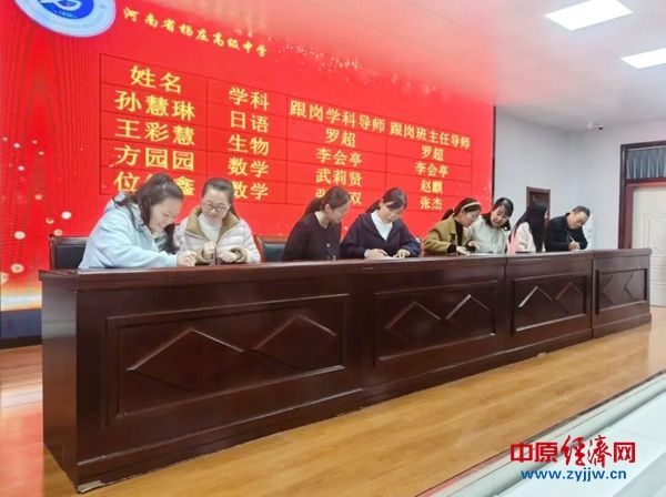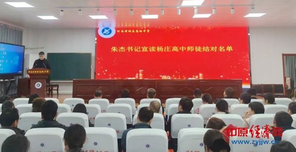 中原经济网驻马店讯(记者 杨晓 全媒体记者 冯占华 通讯员 李新洁)为加强教师队伍建设,促进青年教师专业成长,11月6日,西平县杨庄高中在学术报告厅举行第三届“青蓝工程”师徒结对启动仪式。校党委书记武纲举,党委委员、纪委书记朱杰,党委委员、副校长董向娜、赵大磊、王新丽,党委委员李拥军,校领导武锴、吴保良、李运宝,精英部主任赵永彬及全体结对师徒共同见证了这一重要时刻,仪式由校教师与学生发展中心田卫强主任主持。