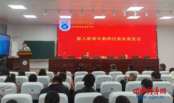 新入职教师代表朱青表达了对学校搭建成长平台的感激之情和虚心求教、快速成长的决心。