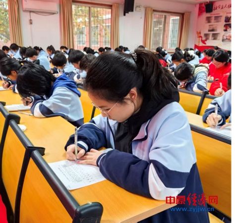 中原经济网驻马店讯 (记者 杨晓 全媒体记者 晨曦 通讯员 李春阳 江廷瑞)为传承中华优秀传统文化,厚植校园文化底蕴,提升学生汉字书写能力与审美素养,驻马店市第九中学于2025年11月6日在学校大会议室成功举办七八年级硬笔书法比赛。本次活动得到全体师生的热烈响应,七八年级同学踊跃报名参赛,经过各班初选,最终确定七八年级共120名学生参赛,孙梅菊副校长到场致辞,希望同学们以笔为媒,在尺幅之间尽显书写风采与文化情怀。
