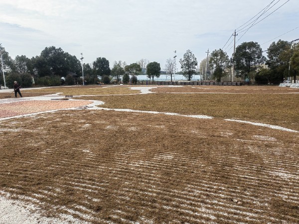 沿着街区的柏油路信步走去,空气中浮动着甜糯的芬芳——那是从街区的广场上溢出来的。黄色的野菊花、红红的高粱、饱满的花生铺满了整个广场,阳光温柔地洒下,透出暖暖的甜香。