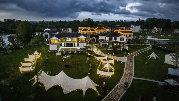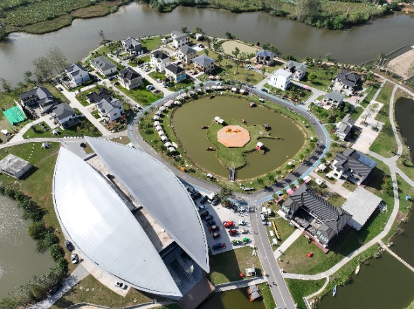 向西出镇,绵延的大堰河如一条柔亮的缎带,在秋日阳光下泛着细碎的银光。此时的阳光仿佛被秋水洗过,温润而明亮,轻轻铺洒在河面与水乡旅游路上。乡建博览园内,三十栋装配式建筑静静矗立,展示着现代乡建的轮廓;非遗体验馆里,陶轮轻转,手艺人的指尖泥土生花,一件件陶器在掌间渐渐成型。日影西斜时,“林深见鹿”露营基地渐渐热闹起来,几顶天幕下,友人围坐,茶香氤氲间笑语低传。