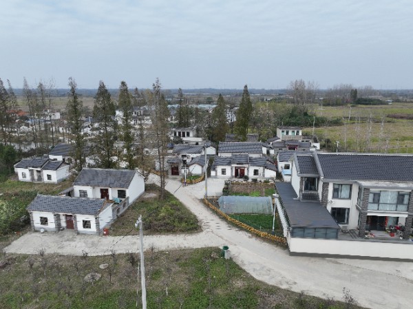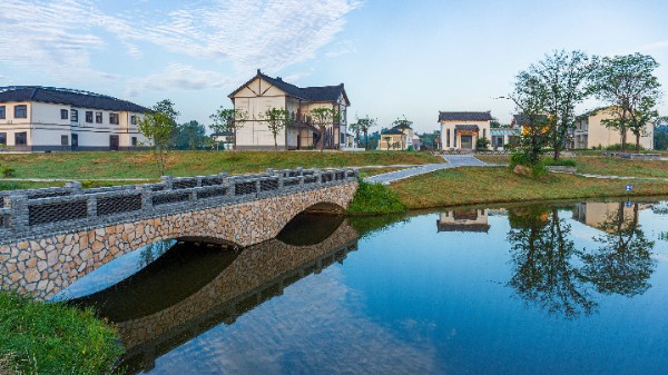 再向前,一幅恬淡的豫南田园画卷徐徐展开。白墙青瓦的民居错落有致,几处篱笆围着小小的菜畦,偶有村民扛着农具从小桥上走过,流水潺潺,鸭群嬉戏——时光在这里仿佛放慢了脚步。