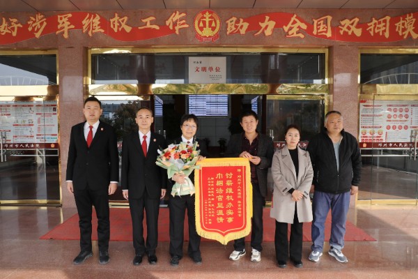 近日,邓州市人民法院民一庭陈金玲法官团队收到一面印有“讨薪维权办实事,巾帼法官显温情”的锦旗。金黄的大字,映照着当事人舒展的笑容。这不仅是对法官倾力为民的感谢,更是对她践行“如我在诉”理念、用心用情办好每一起案件的由衷认可。