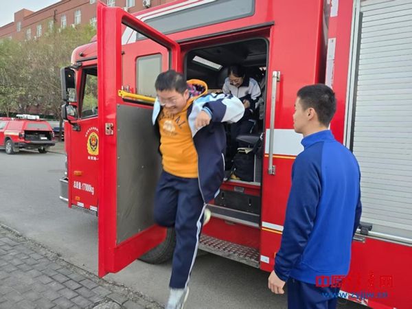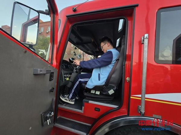 随后,西平县消防救援大队消防员李重为师生们系统讲解了灭火器的正确操作方法,以及火场逃生、自救自护的核心技巧。讲解结束后,他带领同学们近距离参观消防车,并现场演示各类消防器械的使用规范。活动中,同学们全程专注投入,积极与消防员互动交流,同学们还纷纷登上消防车驾驶舱,亲身感受消防工作场景,过了一把“消防员瘾”。