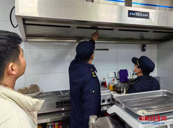 开发区城市管理事务中心工作人员走访辖区餐饮商户、企业单位,仔细排查油烟净化设备的安装使用情况,建立台账;严格按照相关规定,对油烟净化设备安装标准、规范使用、定期清洗等情况进行检查;对油烟净化设备安装不规范、清洗不到位或软管老化等隐患的餐饮商户,责令限期整改,并现场对商户负责人进行提醒教育。同时建立“常态化巡查+动态化监管”机制,加强“回头看”复查和宣传引导,确保问题不反复。